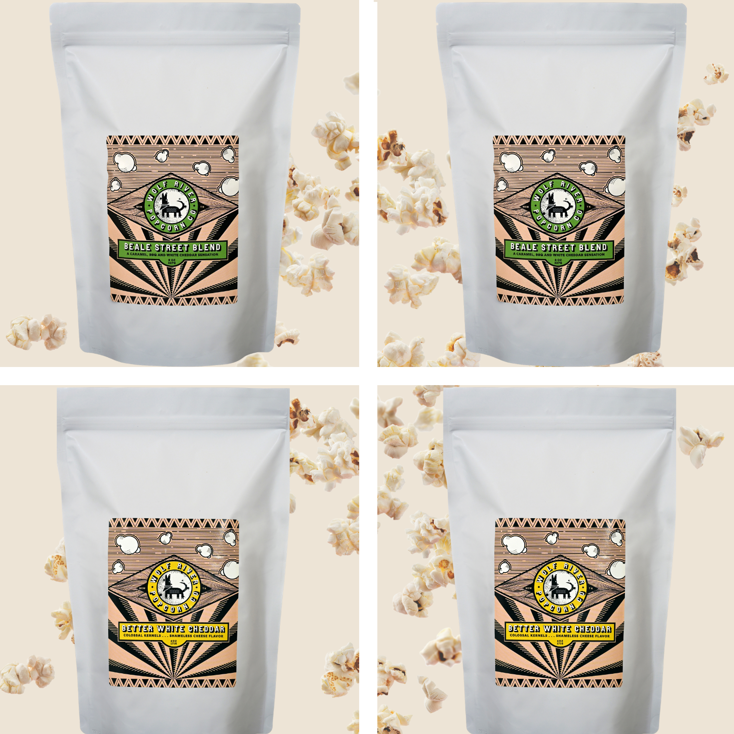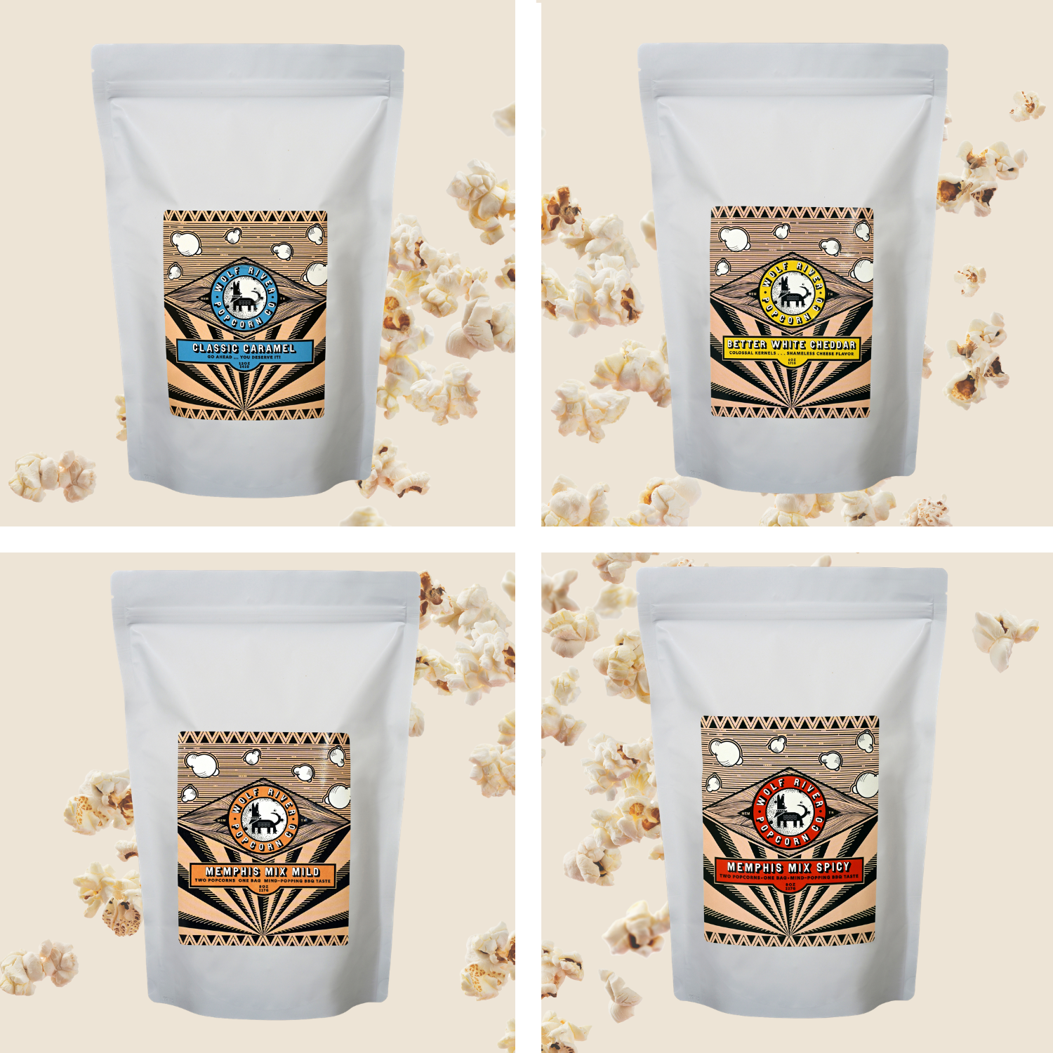 Graceland Memphis spicy mix popcorn is a unique smoky-sweet original recipe BBQ taste by Wolf River Popcorn. Memphis spicy mix is truly unique! It is the mix of two different popcorns in one bag... Classic Caramel with a 9-spice popcorn. This mix delivers the big, bold flavor of genuine sweet, smoky BBQ popcorn combined with the rich, brown sugar sweetness of the Classical Caramel and creates "an amazing party in your mouth". It’s heat level of cayenne pepper is guaranteed to give you a “roller coaster ride in your mouth.”